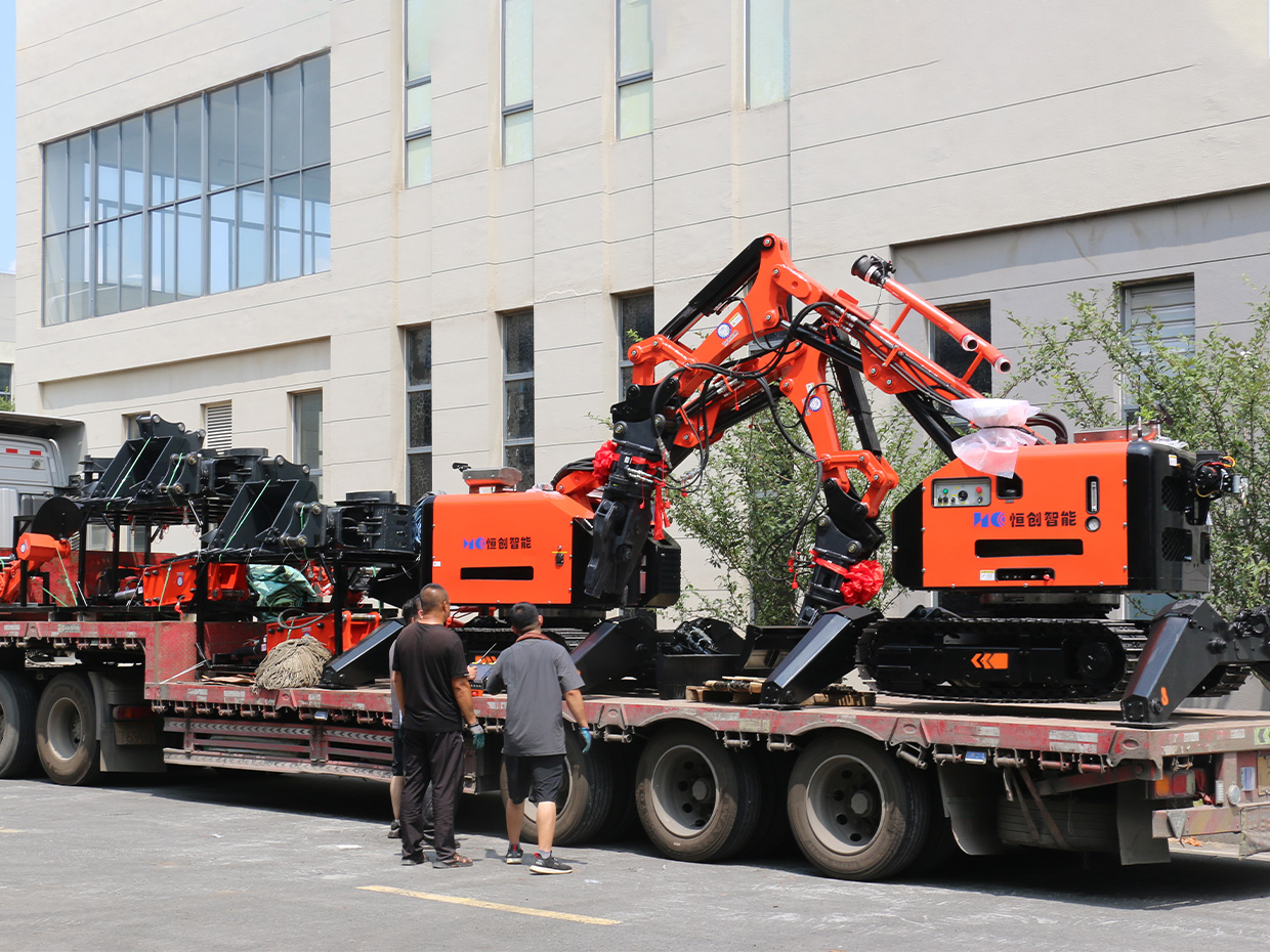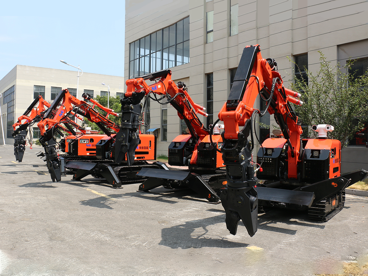 RXR-JM330D-HC型多功能工程機(jī)器人是國內(nèi)自主研發(fā)的一種柴油驅(qū)動(dòng),用于高危環(huán)境下具有精細(xì)化作業(yè)能力的新型高科技裝備。該設(shè)備采用小型履帶運(yùn)動(dòng)底盤作為載體,將負(fù)載反饋式電液比例系統(tǒng)、基于 CAN 總線的數(shù)字式雙向有線遙控系統(tǒng)以及多參數(shù)傳感系統(tǒng)有機(jī)融合,可快速配置液壓錘、挖斗、抓取器、液壓剪等不用作業(yè)屬具,在高溫、高粉塵、易坍塌的危險(xiǎn)區(qū)域中靈活地進(jìn)行全方位遙控的破碎、挖掘、抓取、搬運(yùn)等多功能作業(yè)。主要應(yīng)用領(lǐng)域有建筑拆除、回轉(zhuǎn)窯維修、礦山、隧道施工、冶金爐窯維修、核工業(yè)。